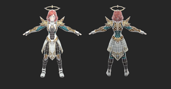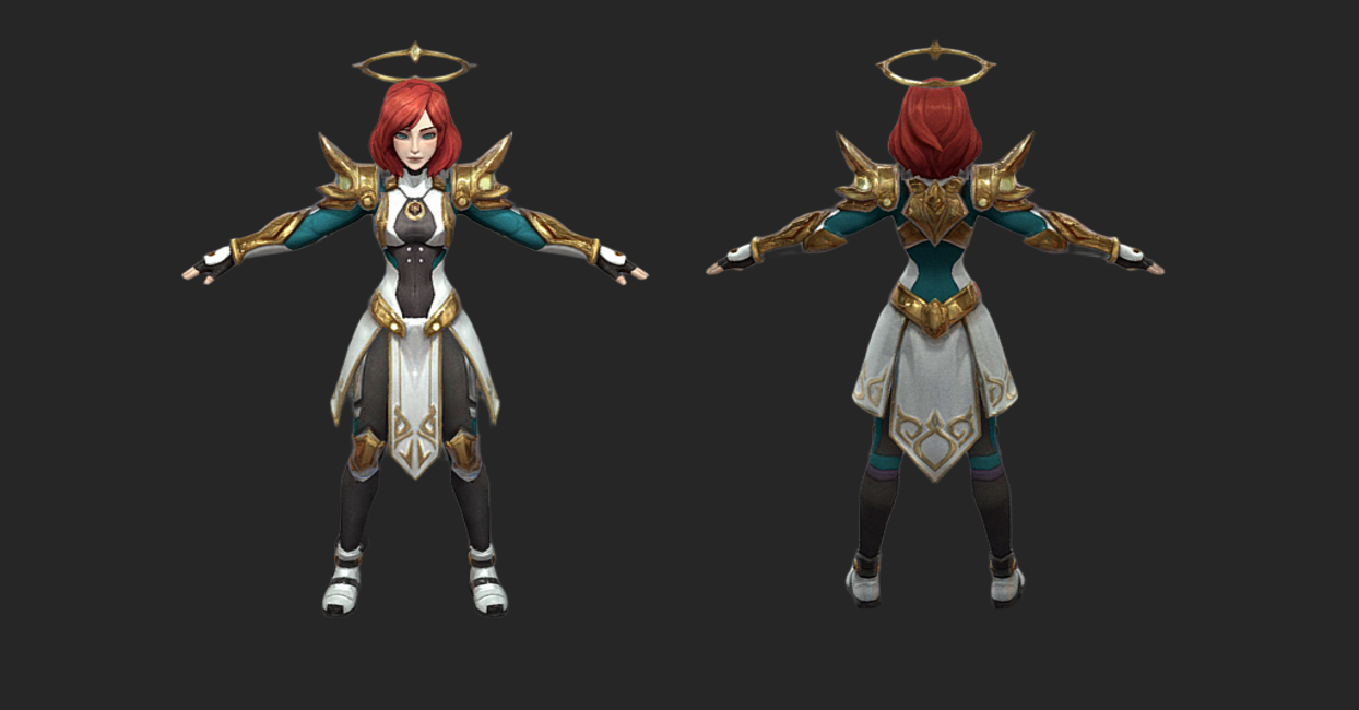 A stylized female warrior with a divine aesthetic. This character is balanced for performance-heavy projects, offering a clean silhouette with a minimal memory footprint. Hand-painted style with flat color influence (Albedo/Diffuse focused).